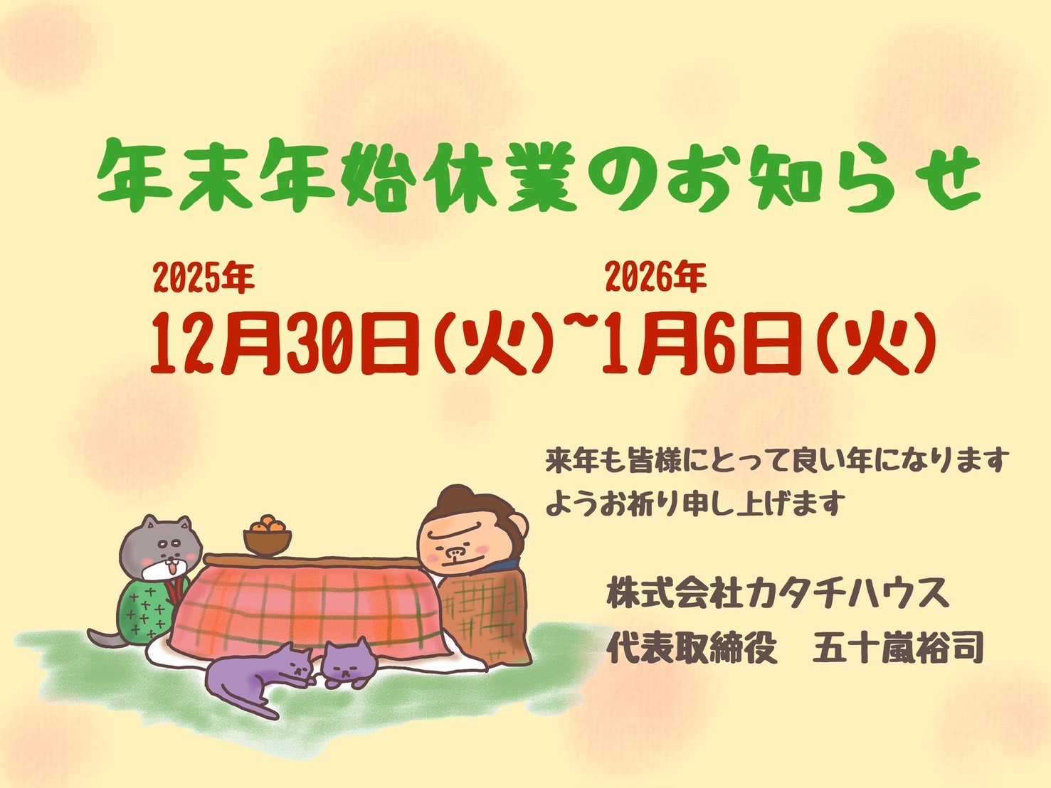 年末年始休業のお知らせ
