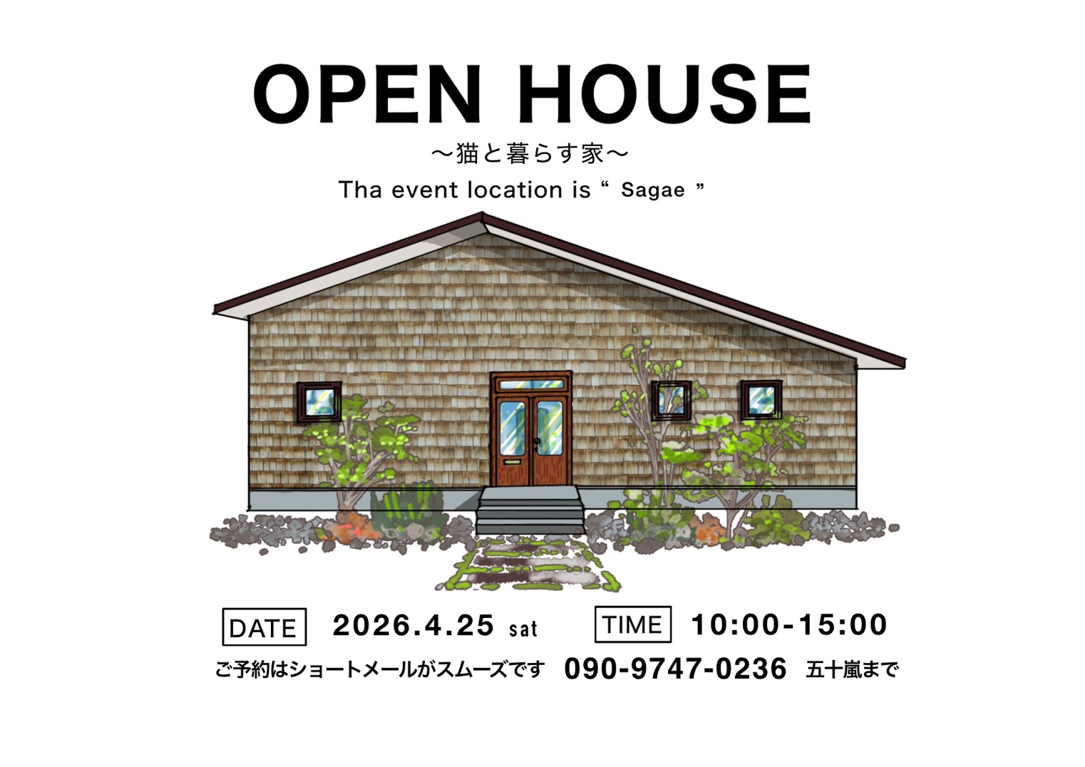 お問い合わせ、ご予約は下記電話番号へショートメールでご連絡ください。
